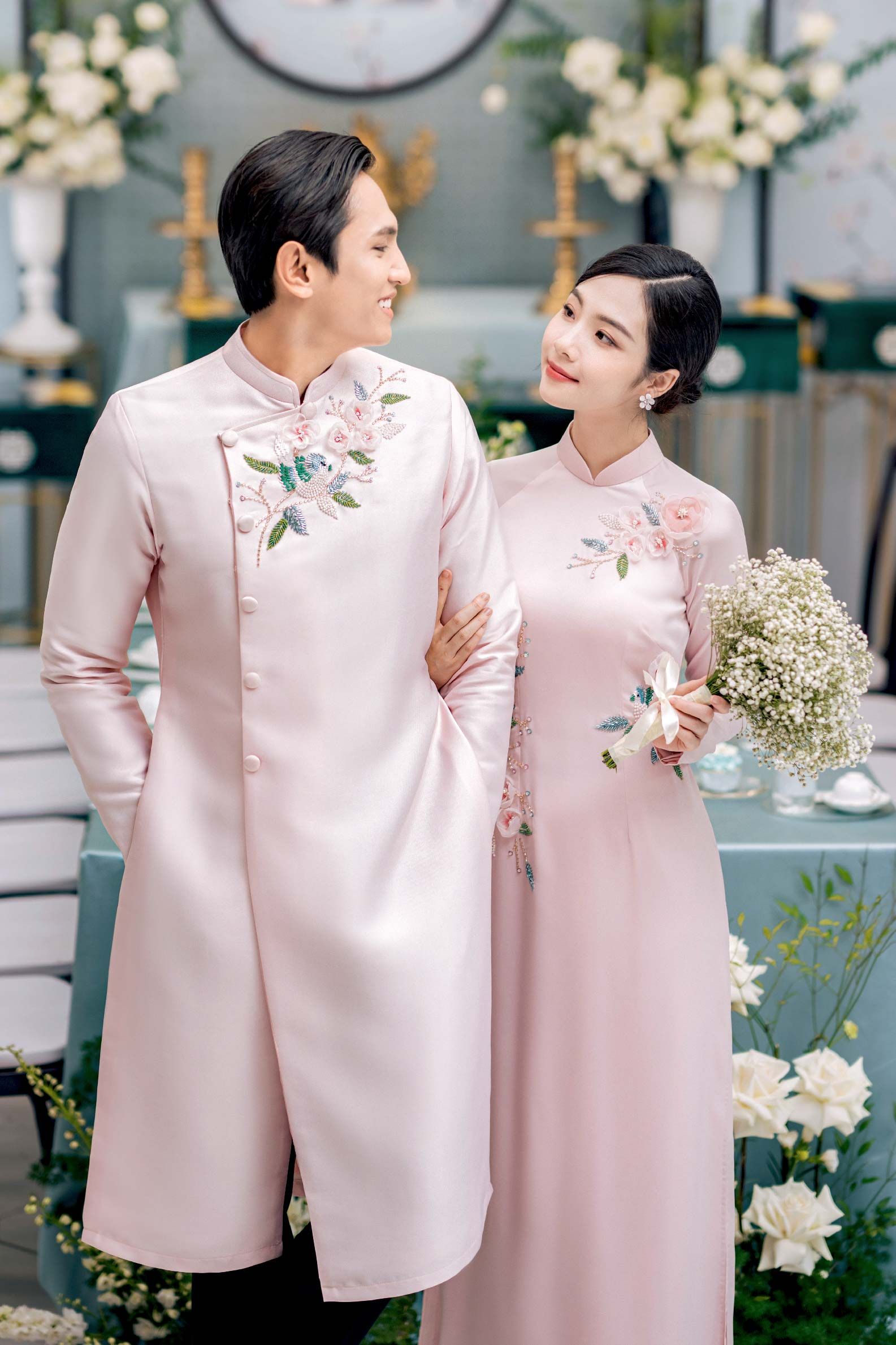 - Màu Sắc Đa Dạng: Không chỉ dừng lại ở màu trắng thuần khiết, áo dài đám cưới ngày nay phong phú với nhiều màu sắc: từ màu pastel dịu dàng, màu hồng ngọt ngào cho đến màu đỏ rực rỡ hay xanh ngọc bích quyến rũ.
