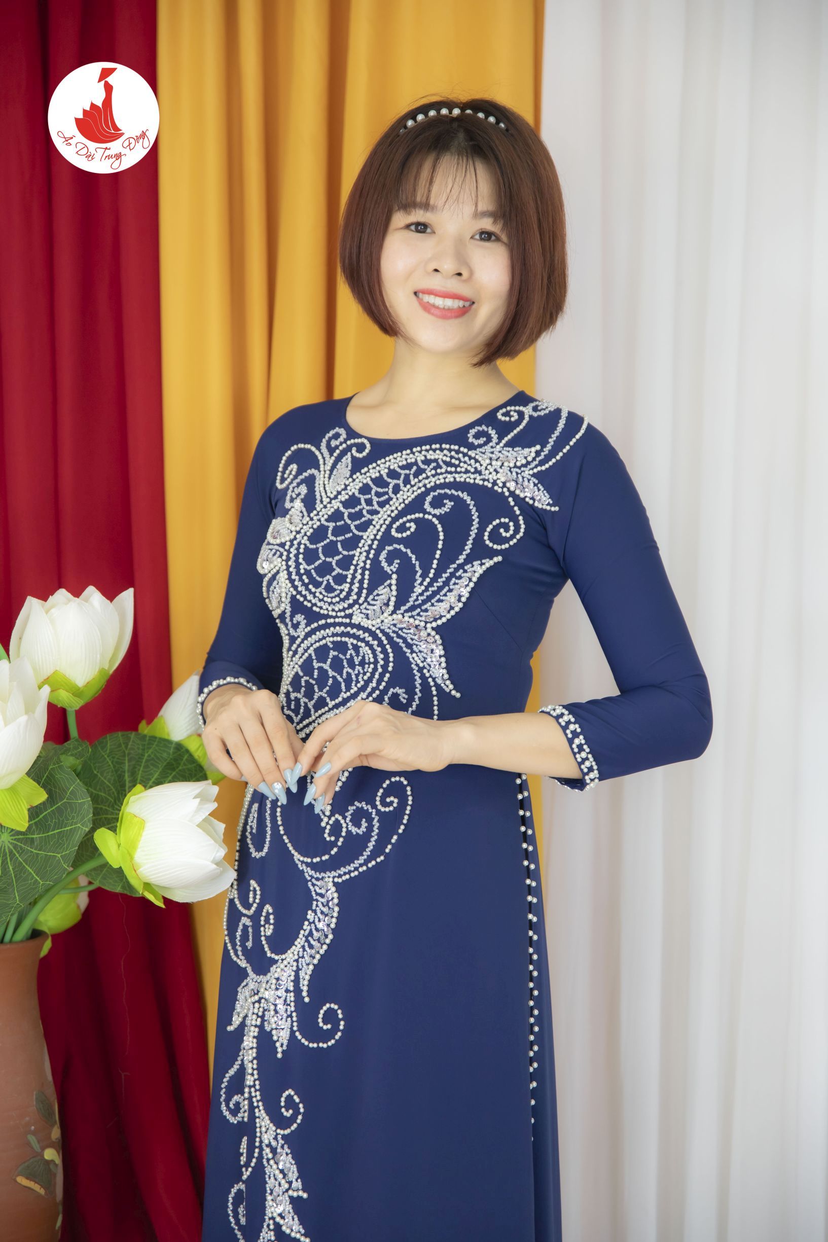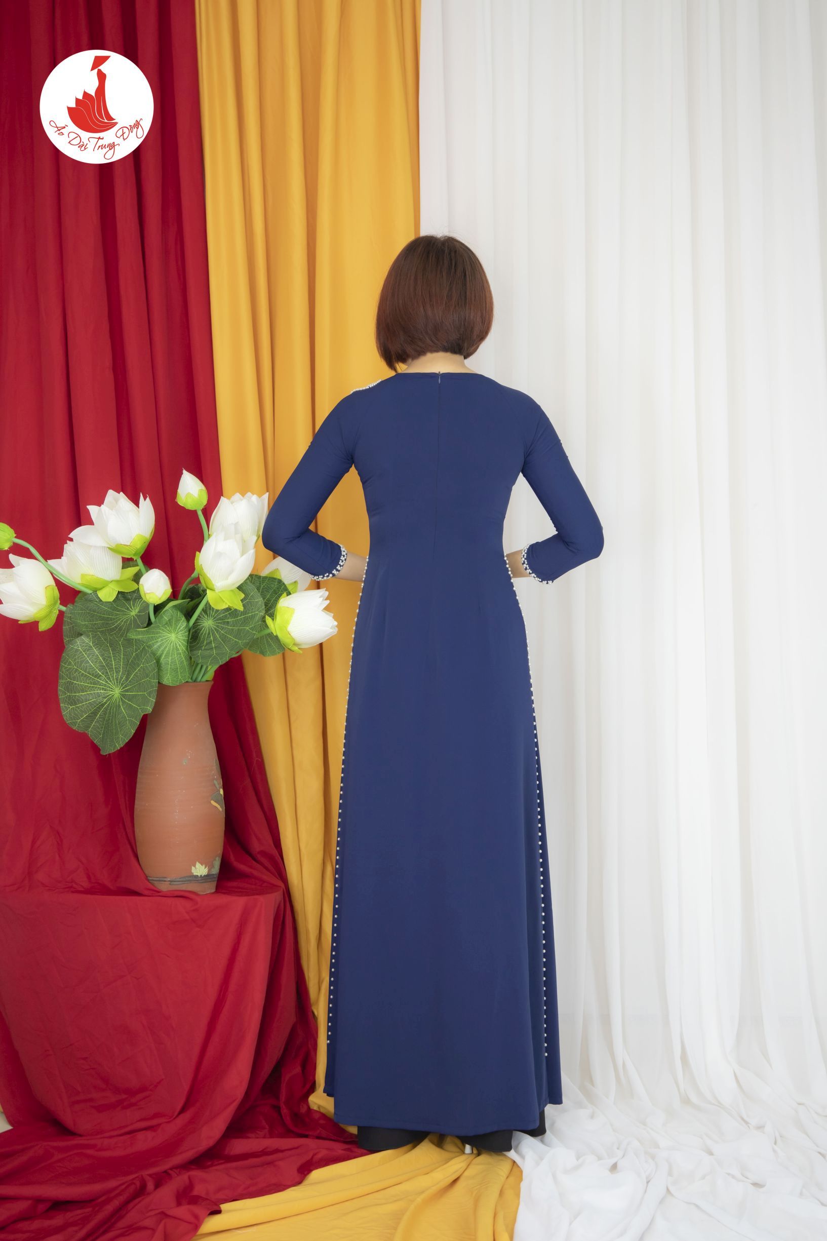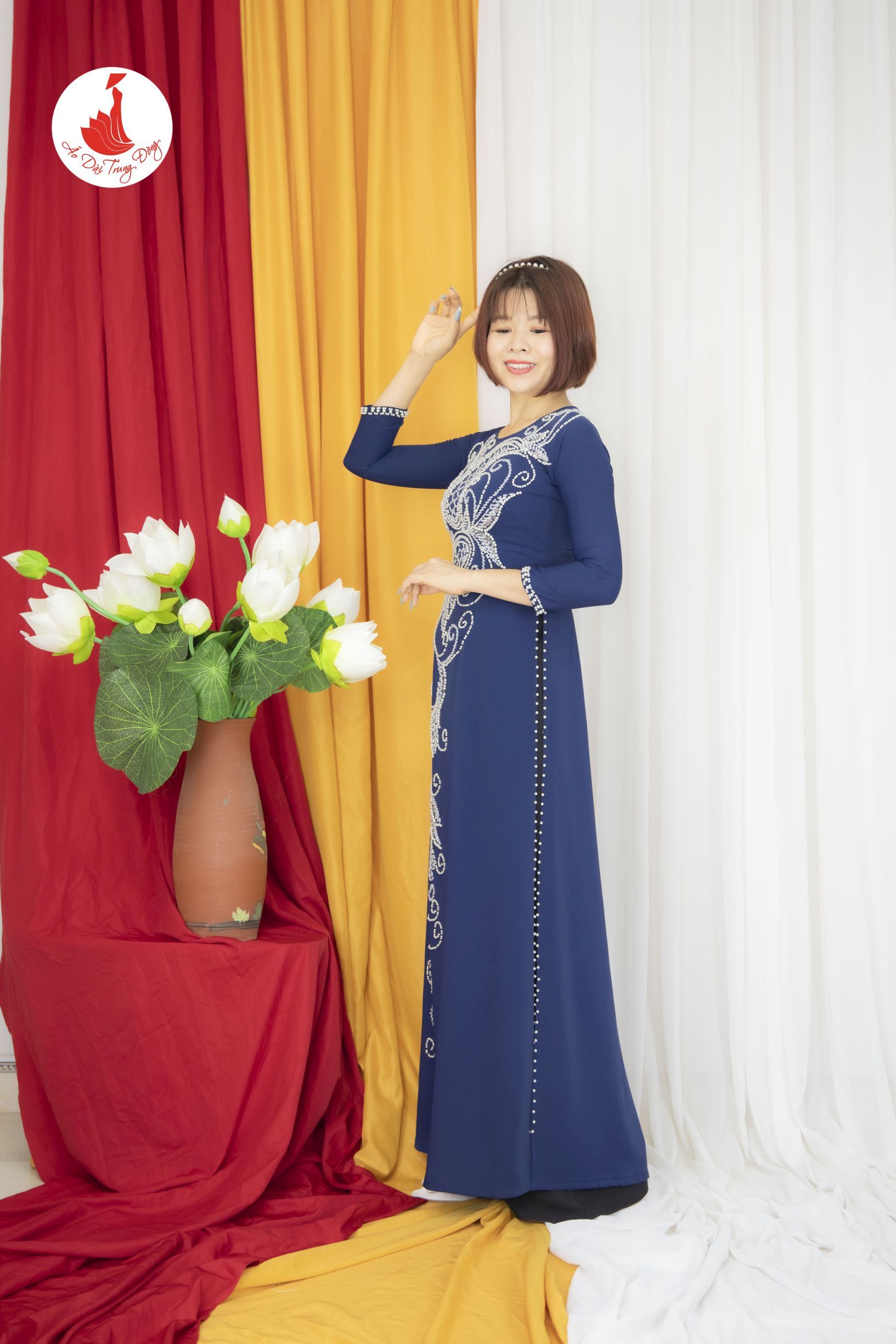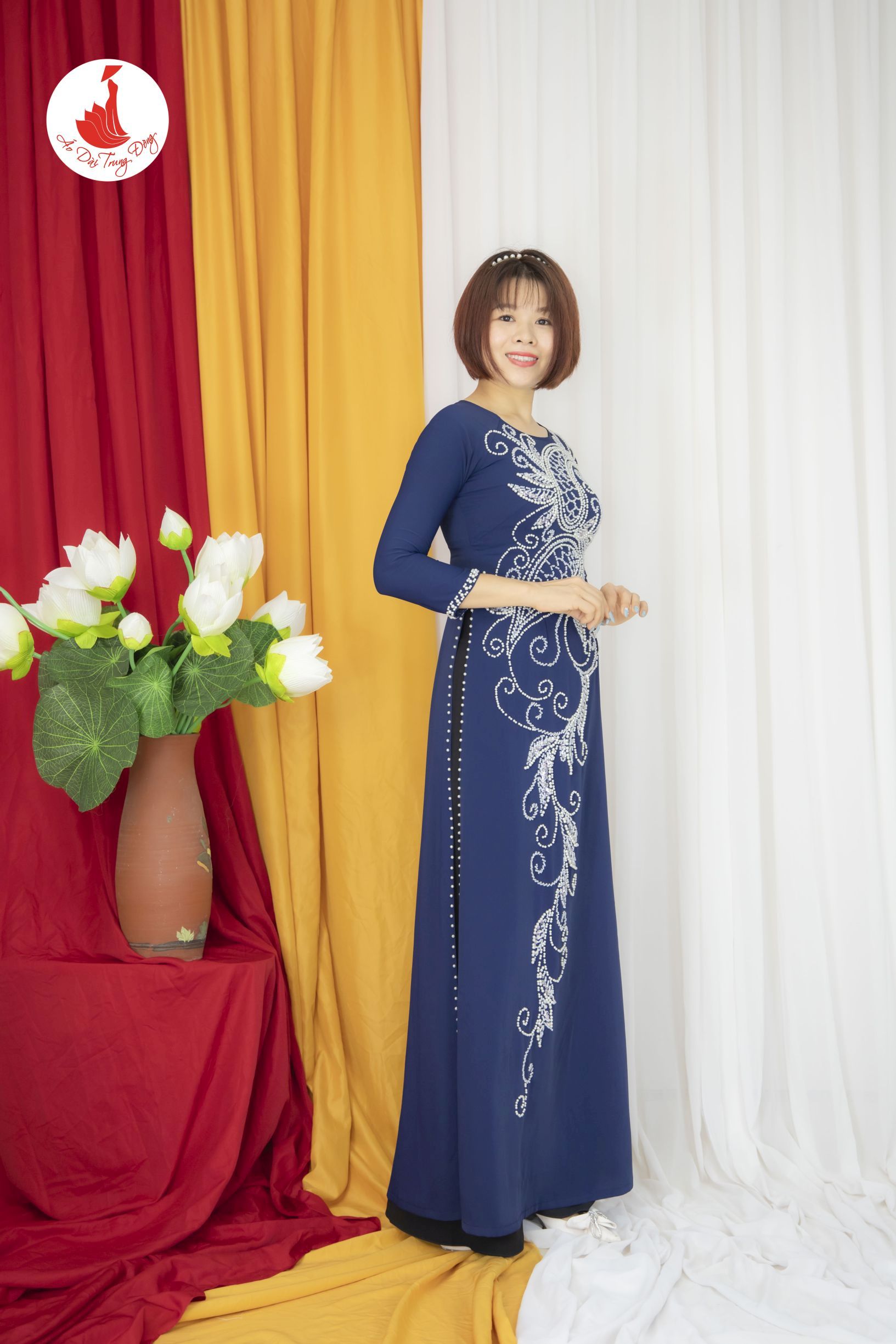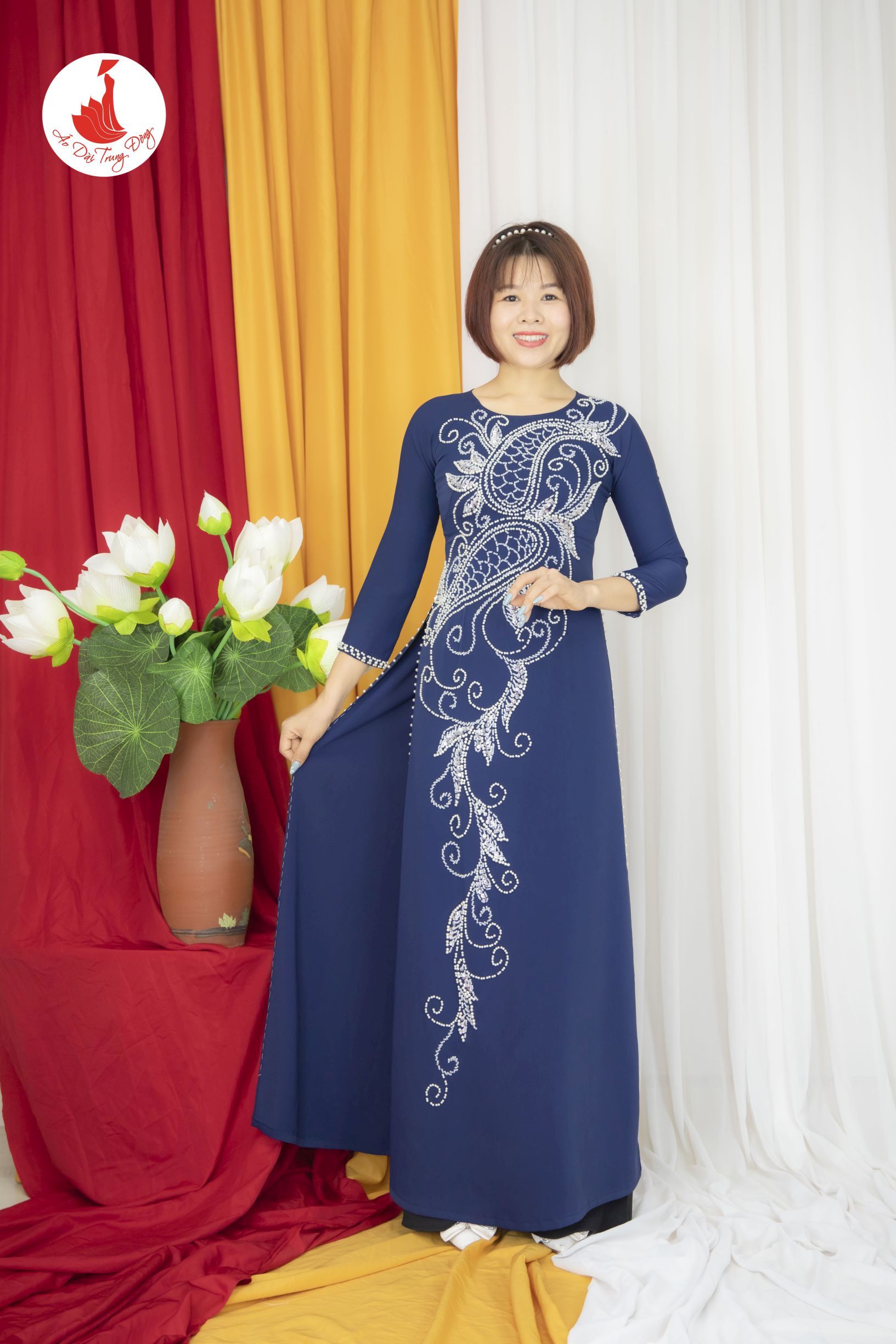 Kiểu dáng: Tà A rộng dài, áo thiết kế cổ cao đính kết sang trọng đẹp mắt