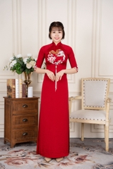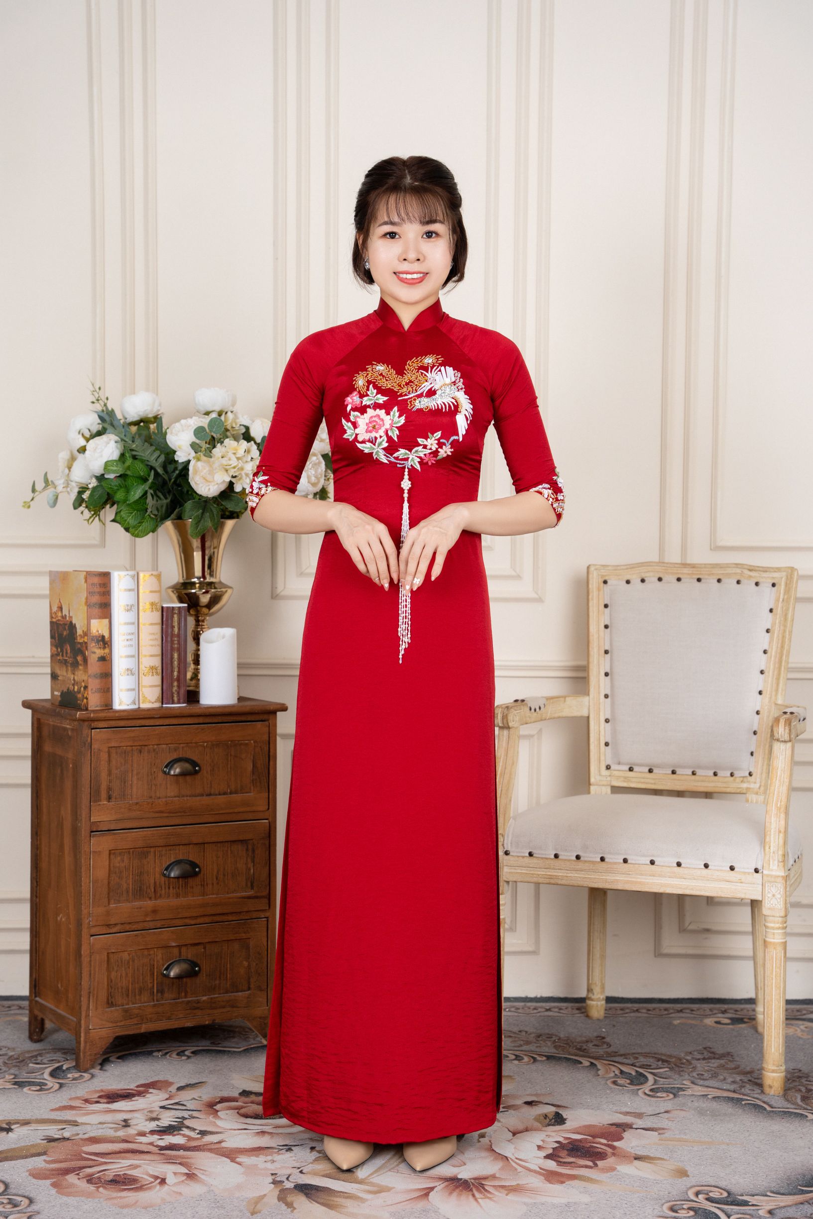 Kiểu dáng: tà A dài rộng cổ truyền thống 2,5cm tay lỡ kết thêu tay tinh tế tỷ mỉ.
