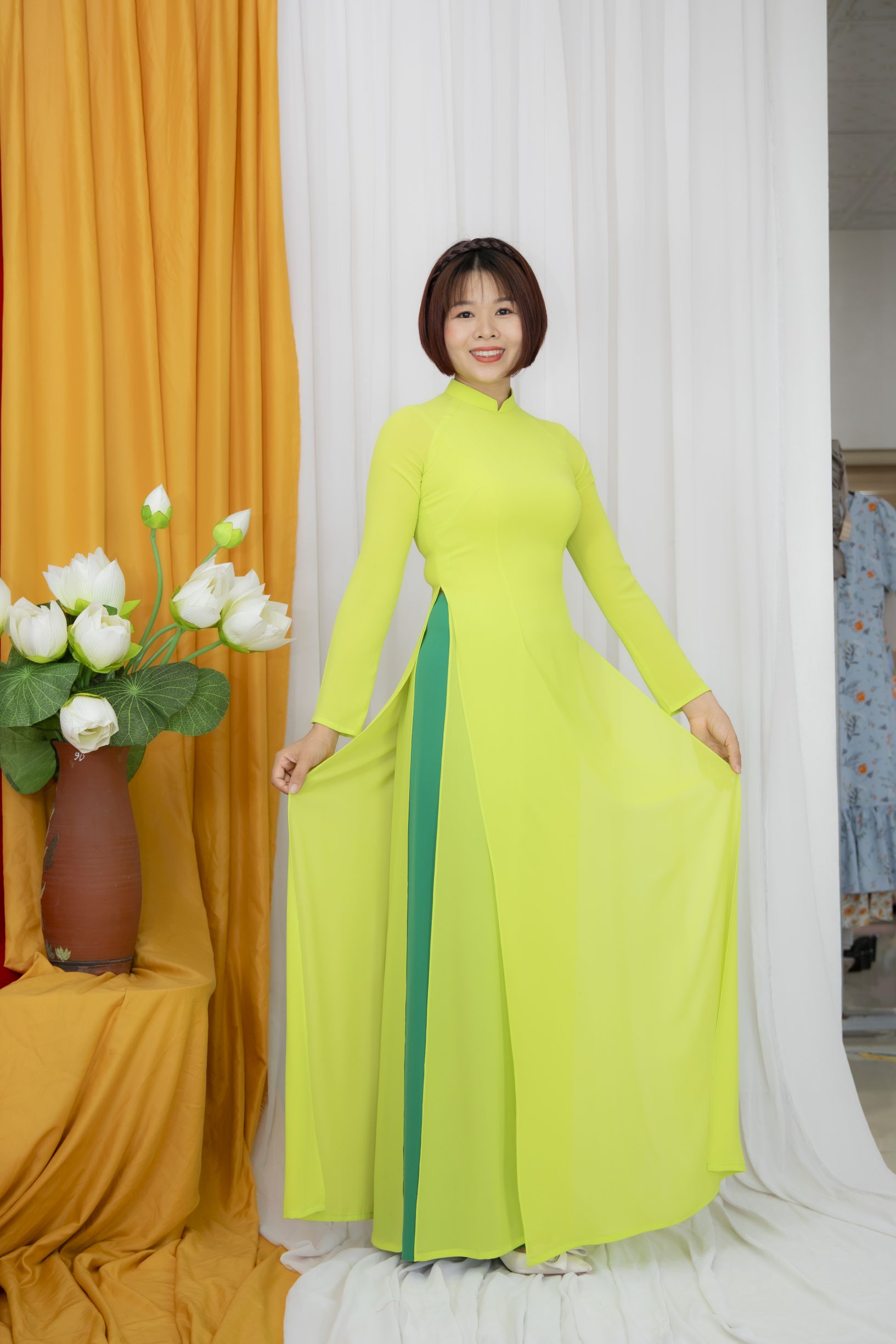 Chất liệu: Vải chifon mềm mại, co giãn, mặc lên dáng thướt tha. Chất liệu có độ mỏng nhẹ nên được may 2 lớp 4 tà ôm phom dáng dễ mặc, không kén dáng người. Đây là dòng sản phẩm quốc dân thích hợp với mọi vóc dáng.