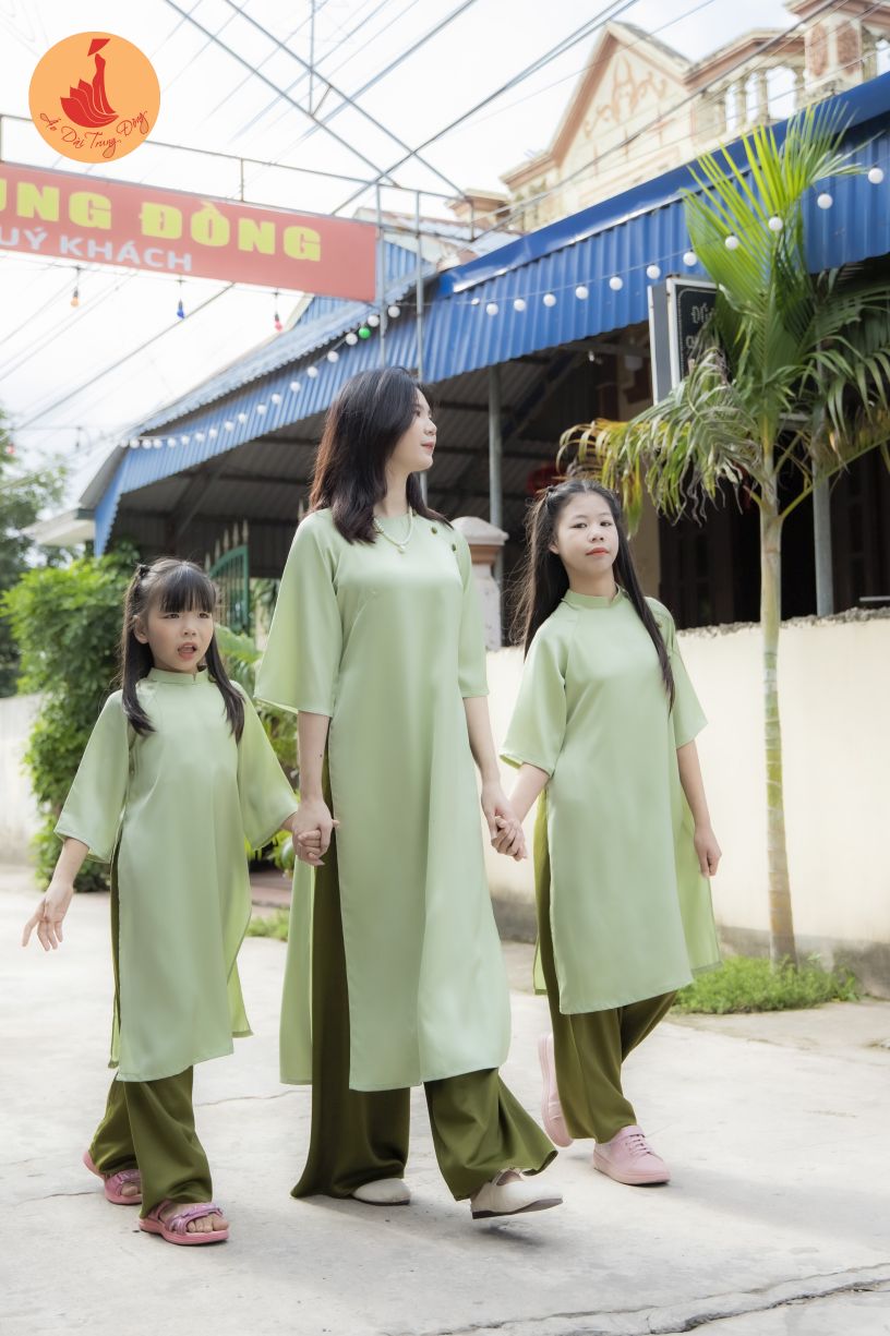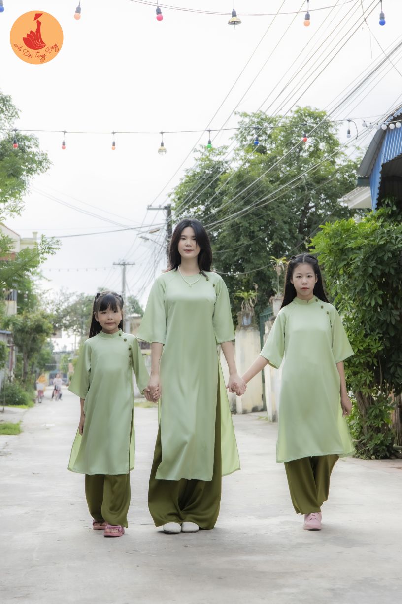 Set áo mẹ bé được thiết kế trên chất liệu lụa Ngọc trai mềm mịn, mướt. Áo được đính cúc hoặc thêu hoa thủ công phối kèm quần hợp tông màu tạo nên một bộ áo dài hài hòa, tinh tế. Áo thiết kế dáng suông vô cùng dễ mặc và cực kỳ thoải mái. dáng suông đang là lựa chọn được các chị em phụ nữ yêu thích trong thời gian gần đây.
